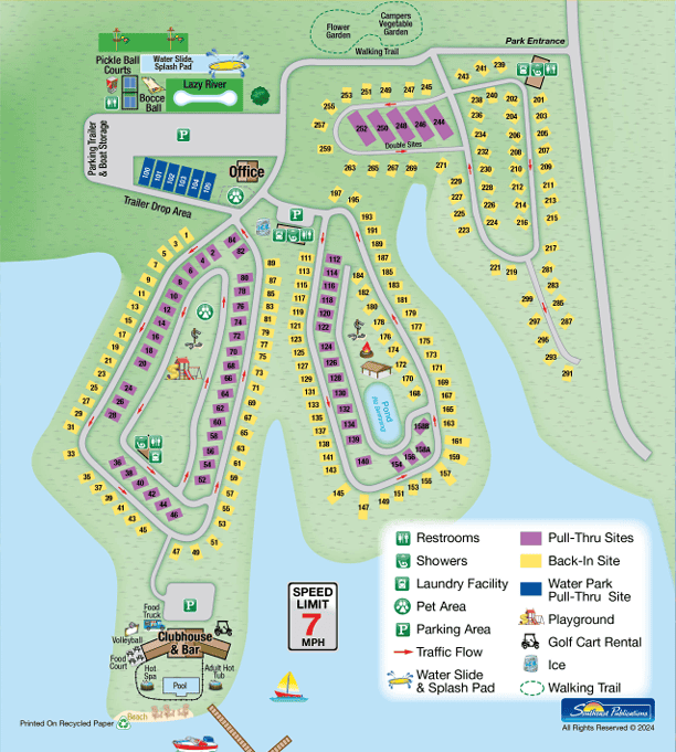 🔌 Hookups: Full hookups (30/50 amp + water + sewer) + Daily concierge trash pickup