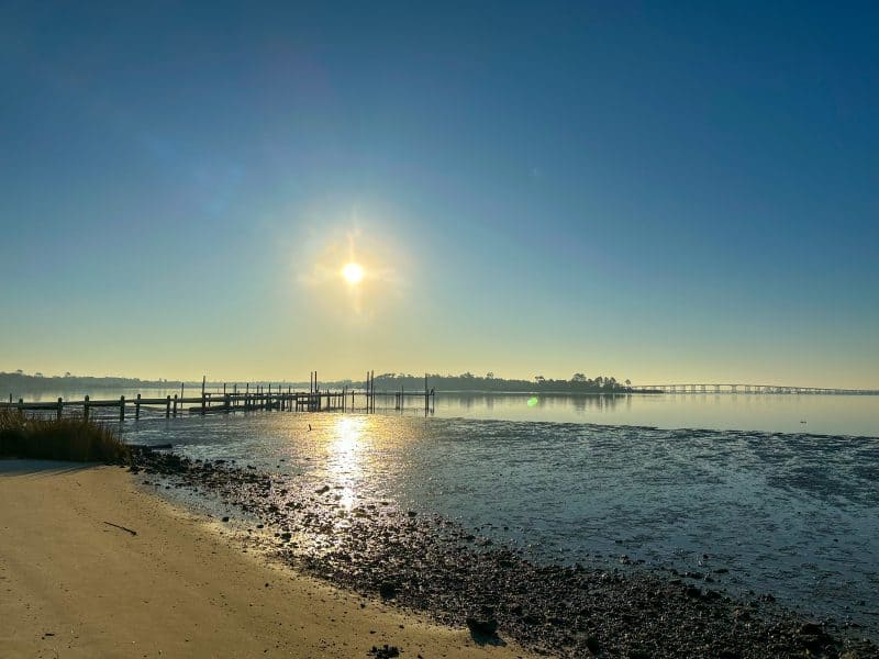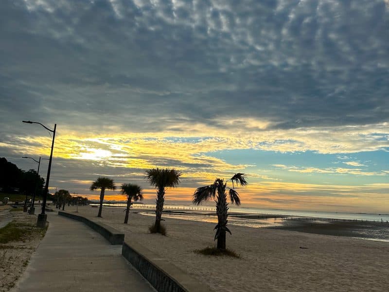 One of the reasons we chose this area is because it was well suited for winter marathon training. Although the campground allows you to get some steps in, we drove over to Ocean Springs Beach and started from there for our seven mile run. There’s free public parking along the edge of the bridge and beach which made it a great starting point.