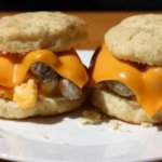 [wpurp-searchable-recipe]Sausage, Egg & Cheese Breakfast Biscuits – – BoFrost Original Nürnberger Rostbratwürstl — still frozen (#411- still frozen), oil for frying, eggs, Splash of milk to taste, Salt & pepper to taste, biscuits, American cheese, , Add a tablespoon or two of oil to a small skillet, enough to fry the sausages in. Fry sausages about 5 minutes at middle heat or until they are lightly browned outside.; While sausages are cooking, crack two eggs into a small bowl and add a swallow of milk, salt and pepper to the eggs. Scramble well.; Add small amount of butter or cooking oil to small skillet and preheat to medium-high heat until butter/oil is melted. Add eggs and allow them to cover the bottom of the pan. Using your best omelet flipping skills, loosen the egg from the sides and bottom of the pan with a spatula and flip it over to cook the other side. Cut into 4 equal pieces. If you can’t keep the eggs together or it sticks, just scramble the eggs at will and we’ll worry about keeping the eggs on the sandwich later.; Cut biscuits in half and place a layer of egg, then sausage and finally cheese on the bottom half of each biscuit. If you have sausage patties, you can place them on the bottom but with the initial layering order the cheese holds everything together and in place.; Place breakfast sandwiches on a microwave-safe plate and nuke for about 30 seconds or until the cheese melts. If your oven is warm from baking biscuits, throw them in there instead on a baking sheet for a few minutes.; Set the upper half of the biscuit on top of your breakfast sandwich and enjoy with plenty of ketchup!; ; – – German – Breakfasts – Food[/wpurp-searchable-recipe]