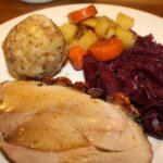 You can serve Schweinebraten with many different sides or vegetables, especially if you throw other veggies into the roasting pan besides carrots, potatoes and onions (leeks, celery and other root vegetables are great options). Garlic and bay leaves can also go into the roasting pan with or instead of the cloves and juniper berries. It’s a matter of personal tastes or what you have on hand. One of the more traditional ways of serving Schweinebraten is with Blaukraut (red cabbage) and Semmelknödel (bread dumplings) as I mentioned above. Recipes for those will be coming in the following days…if I can keep myself from drooling all over the keyboard!