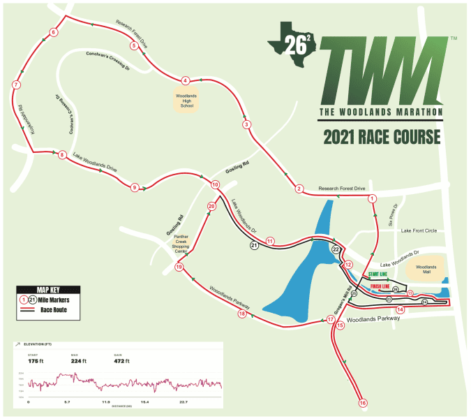 The Woodlands Marathon holds a special place in our hearts. It winds through tree-lined streets, crosses familiar paths, and finishes along the Waterway — down streets we’ve driven and walked hundreds of times now. This race is home.