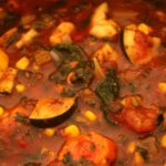 - Add chicken broth, tomato sauce, and crushed tomatoes. Bring to boil, stirring frequently. If desired add red wine at this point. Reduce heat to low and add kidney beans, green beans, corn, spinach leaves, zucchini, oregano, basil, garlic pepper, salt and black pepper. Simmer for 3 to 4 hours, the longer the better.