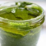- Pour enough olive oil over the pesto in the jar to cover it. Store in your refrigerator up to a few months…if you don’t eat it all by then. When you take some of the pesto out, remember to cover it back up again with olive oil as needed.